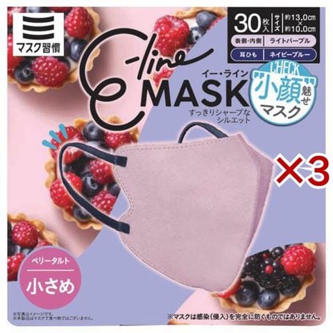 E-lineマスク 小さめ ライトパープル×ネイビーブルー (30枚入×3セット)