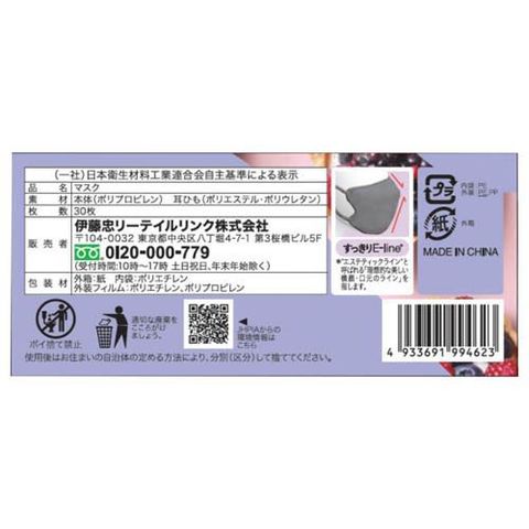 E-lineマスク 小さめ ライトパープル×ネイビーブルー (30枚入×3セット)のレビュー