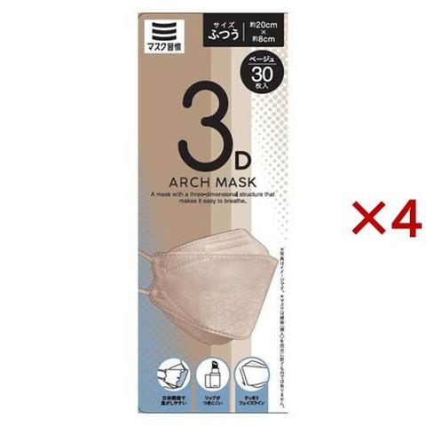 マスク習慣 3Dアーチマスク ふつう ベージュ (30枚入×4セット)