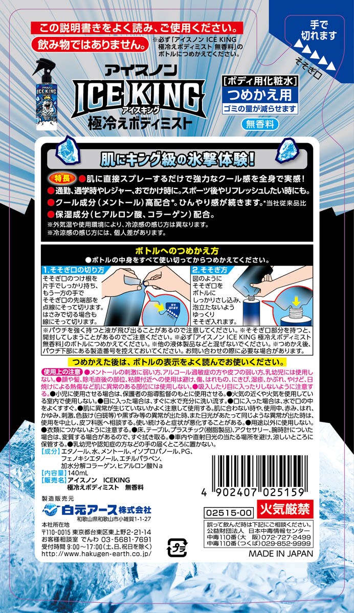 【アイスノンICE KING極冷えボディミスト無香料つめかえ用 冷却スプレーの商品詳細】