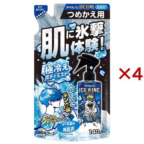 アイスノンICE KING極冷えボディミスト無香料つめかえ用 冷却スプレー (140mL×4セット)