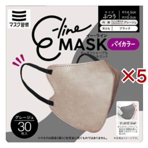 E-lineマスク ふつう グレージュ×ブラック (30枚入×5セット)