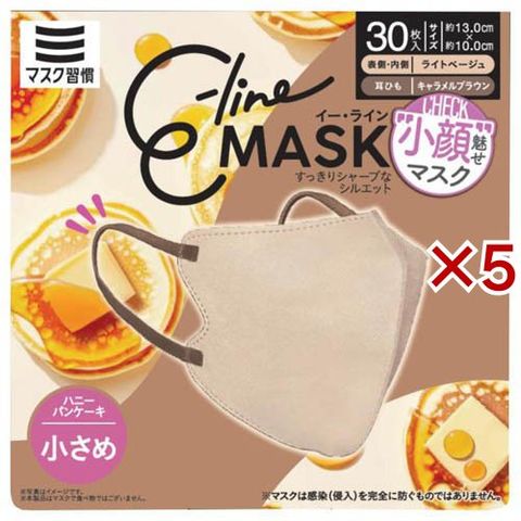 E-lineマスク 小さめ ライトベージュ×キャラメルブラウン (30枚入×5セット)