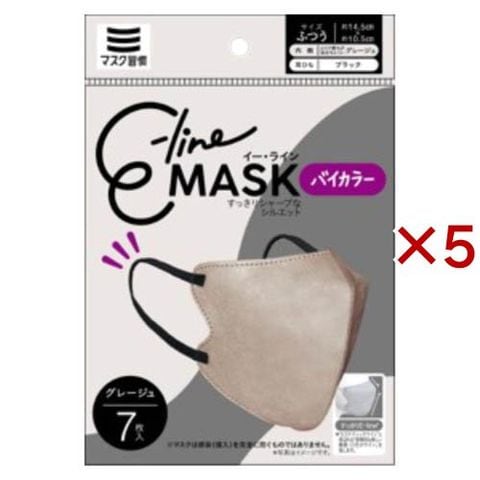 E-lineマスク ふつう グレージュ×ブラック (7枚入×5セット)