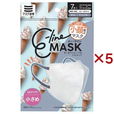 E-lineマスク 小さめ スノーホワイト×アッシュブルー (7枚入×5セット)