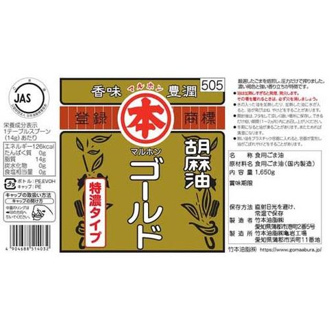 【マルホン 胡麻油 マルホンゴールド ポリの商品詳細】