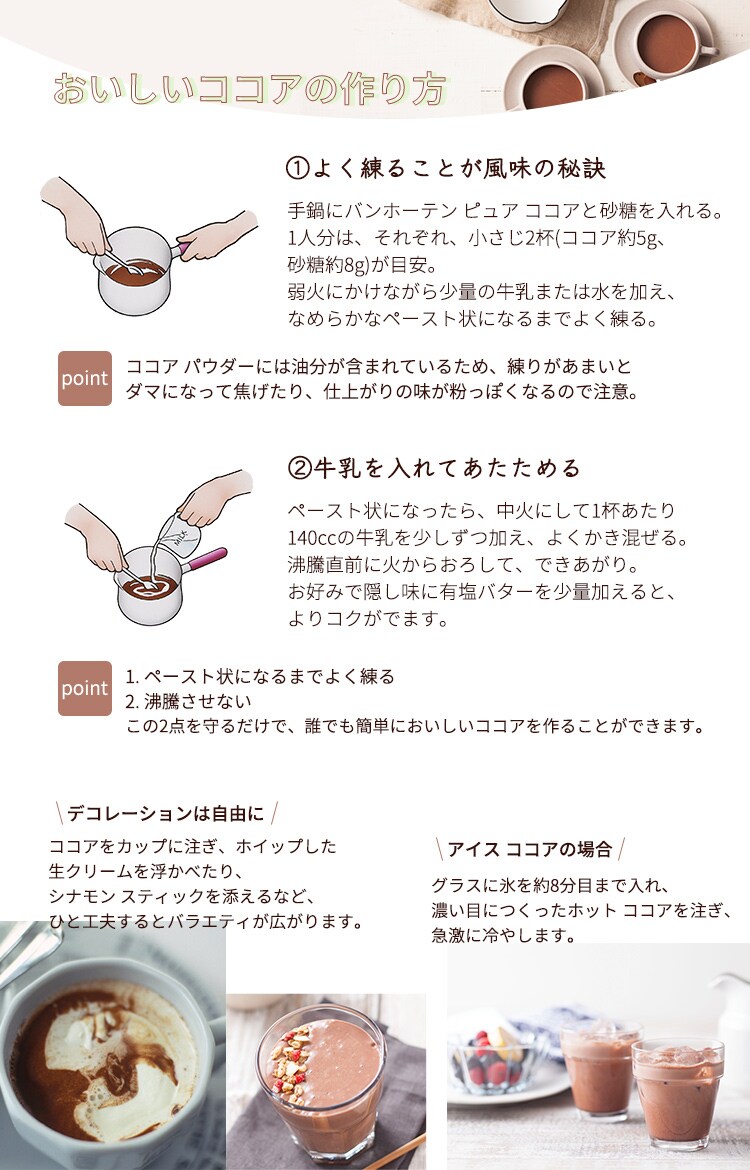 ●ピュア ココアの持つ香りや味わいをしっかりとお楽しみいただけます。