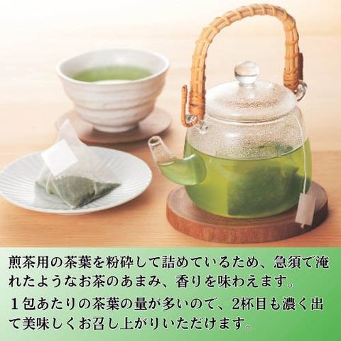 ●煎茶用の茶葉を詰めているため、急須で淹れたようなお茶の香り・甘みを味わえます。