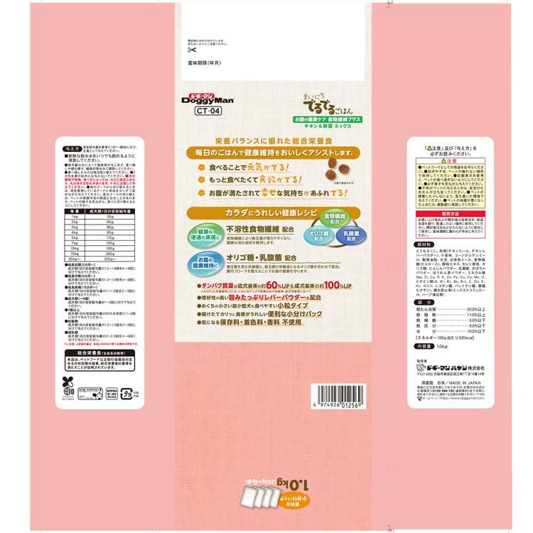 ●チキン&野菜ミックスでおいしさと栄養のバランスグッド。旨みたっぷりレバーパウダー配合で嗜好性抜群。一番外側に旨みがでる製法で食欲がでるでる。●粗たんぱく質30.0%以上、たんぱく質たっぷりで元気を維持。●いつも開けたて便利な250g小分けパック×4袋セット。全成長段階用の総合栄養食。保存料、着色料、香料 無添加。