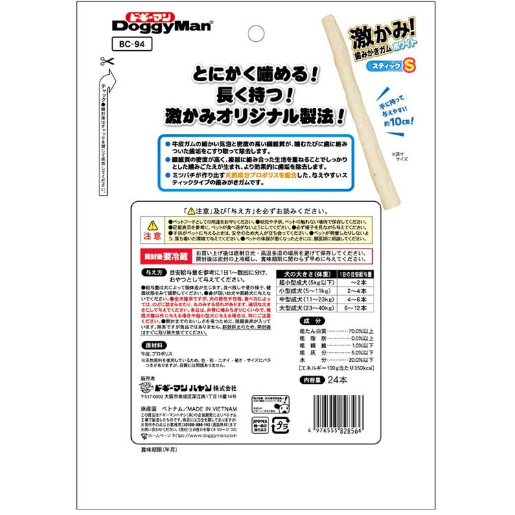●特殊構造の薄い牛革を巻いて作ったスティックタイプ。小型犬に与えやすいサイズ。
