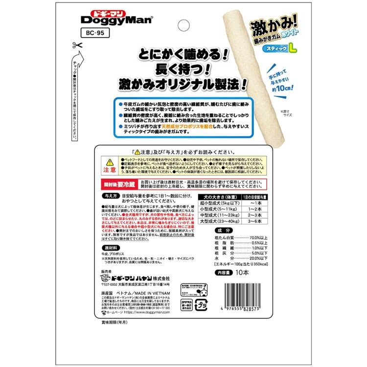 ●特殊構造の薄い牛革を巻いて作ったスティックタイプ。中、大型犬も満足できるサイズ。