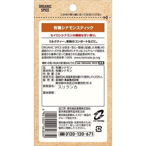 ORGANIC SPICE 袋入り 有機シナモンスティック (3本入×5セット)