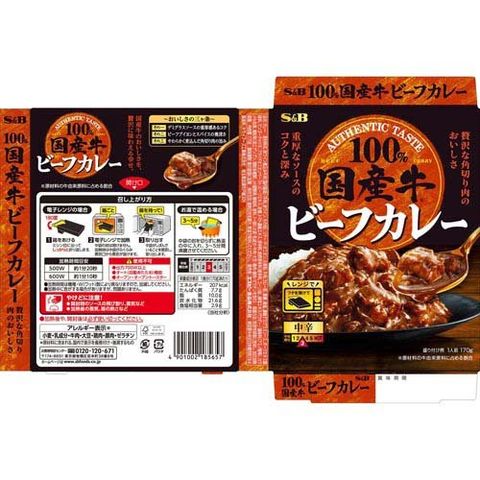| 赤ワイン煮込み牛肉(国内製造)(牛肉、赤ワイン、その他)、ソテー・ド・オニオン、小麦粉、牛肉、カレー粉、果糖、食塩、濃縮デミグラスソース、ポークエキス調味料、マンゴーチャツネ、フライドオニオンペースト、ビーフエキス、砂糖、トマト濃縮エキス、香辛料、焙煎香辛料(香辛料、コーン油)、酵母エキスパウダー/調味料(アミノ酸等)、カラメル色素、増粘剤(加工デンプン、増粘多糖類)、pH調整剤、酸味料、香料、(一部に小麦・乳成分・牛肉・大豆・鶏肉・豚肉・ゼラチンを含む) |