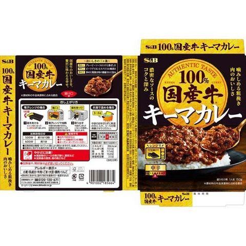 | 牛肉(国産)、ソテー・ド・オニオン、チャツネ、リンゴパルプ、パン粉、野菜(にんにく、セロリ、しょうが)、トマトペースト、グレービーソース、カレー粉、小麦粉、食塩、香辛料、ビーフエキス、醸造酢、焙煎香辛料(香辛料、コーン油)、香味油、ローストガーリック/カラメル色素、調味料(アミノ酸等)、増粘剤(加工デンプン)、酸味料、香辛料抽出物、香料、(一部に小麦・乳成分・牛肉・ごま・大豆・豚肉・りんごを含む) |
