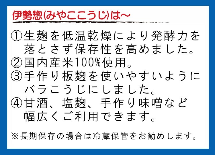 ●手作り板麹を使いやすいようバラこうじにしています。