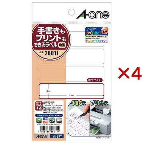エーワン 手書きもプリントもできるラベル 角型 6面82×19mm 26011 (12シート入×4セット)