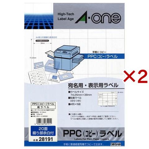 エーワン ラベルシール PPC コピー ラベル 20面 74.25×38mm 28191 (20シート入×2セット)