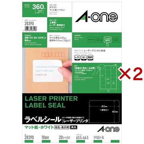 エーワン ラベルシール レーザー 18面 63.5×46.5mm 28390 (20シート入×2セット)