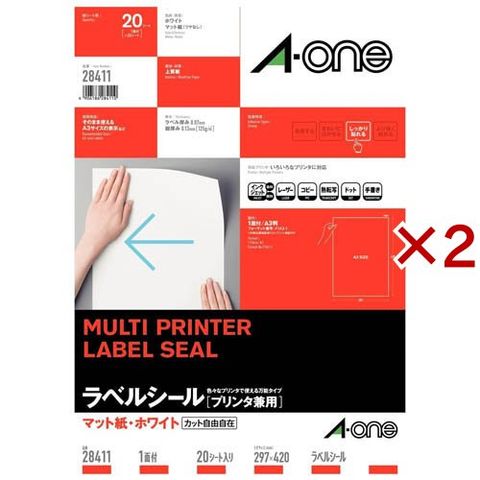 エーワン ラベルシール A3 1面 ノーカット 28411 (20シート入×2セット)