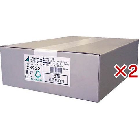 エーワン ラベルシール インクジェット 12面 86.4×42.3mm 28922 (500シート入×2セット)