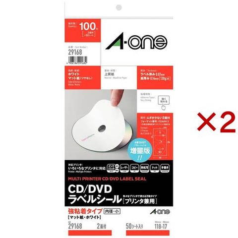 エーワン ラベルシール CD DVDラベル 2面 118×118mm 29168 (50シート入×2セット)
