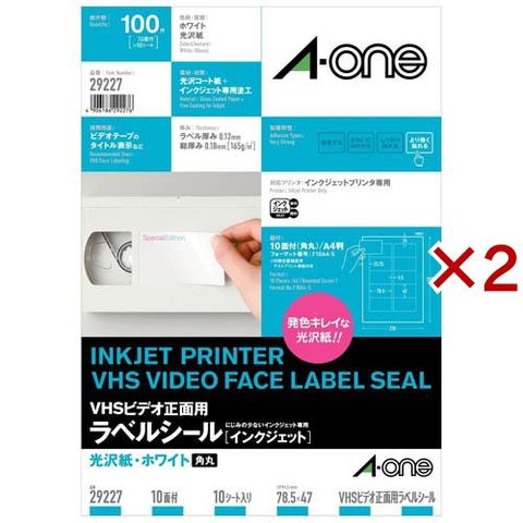 エーワン ラベルシール インクジェット 光沢紙 10面 VHSビデオ 正面用 29227 (10シート入×2セット)