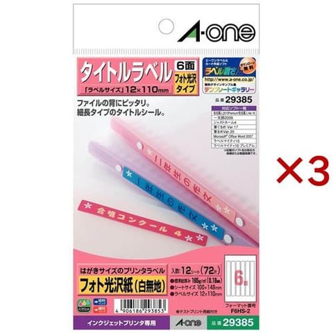 エーワン タイトル ラベル インクジェット 光沢紙 6面 110.0×12.0mm 29385 (12シート入×3セット)
