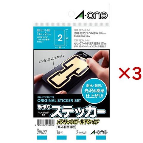 エーワン 手作り ステッカー 自作 インクジェット ゴールド はがき 29427 (2シート入×3セット)