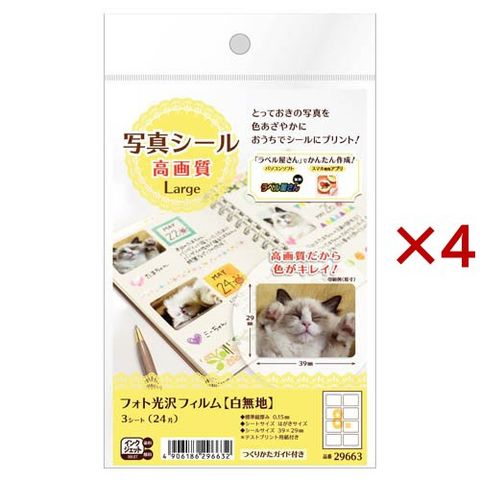 エーワン 写真シール インクジェット 高画質 8面 29×39mm 29663 (3シート入×4セット)