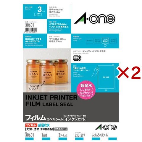 エーワン ラベルシール インクジェット 超耐水 光沢 透明 フィルム 1面 30601 (3シート入×2セット)