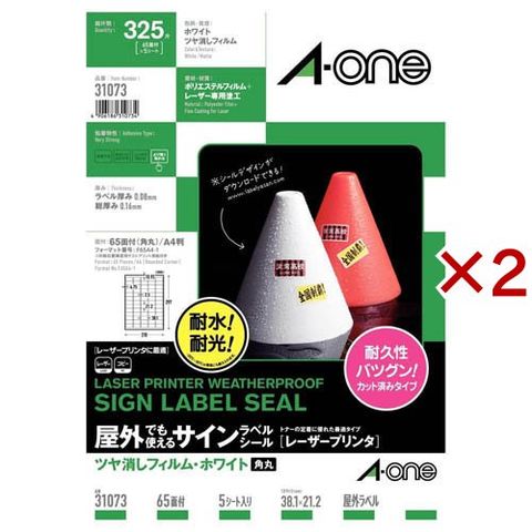 エーワン 屋外使える ラベル レーザー つや消し フィルム 白 65面 38.1×21.2mm 31073 (5シート入×2セット)