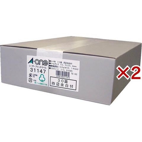 エーワン ラベルシール レーザー 30面 53.3×25.4mm 31147 (500シート入×2セット)