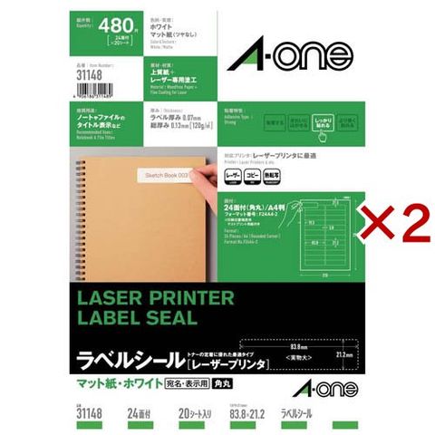 エーワン ラベルシール レーザー 24面 83.8×21.2mm 31148 (20シート入×2セット)