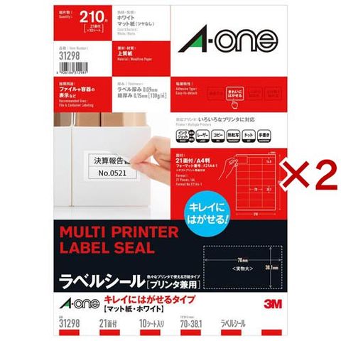 エーワン ラベルシール きれいにはがせる 21面 70×38.1mm 31298 (10シート入×2セット)