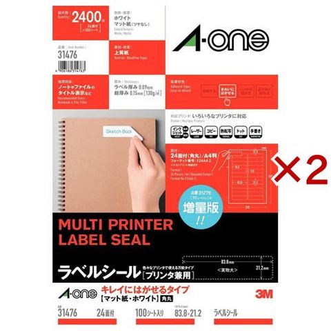 エーワン ラベルシール きれいにはがせる 24面 83.8×21.2mm 31476 (100シート入×2セット)