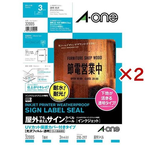 エーワン 屋外使えるラベル インクジェット 光沢 フィルム 透明 UVカット 32005 (3シート入×2セット)
