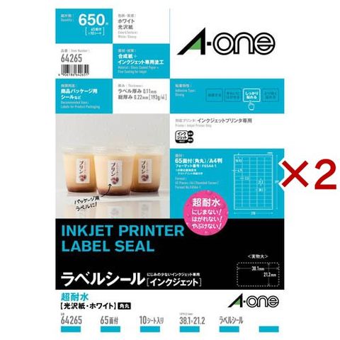 エーワン ラベルシール インクジェット 超耐水 光沢紙 65面 38.1×21.2mm 64265 (10シート入×2セット)