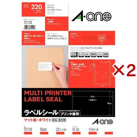 エーワン ラベルシール 宛名ラベル 10面 名刺サイズ 91×55mm 72110 (22シート入×2セット)