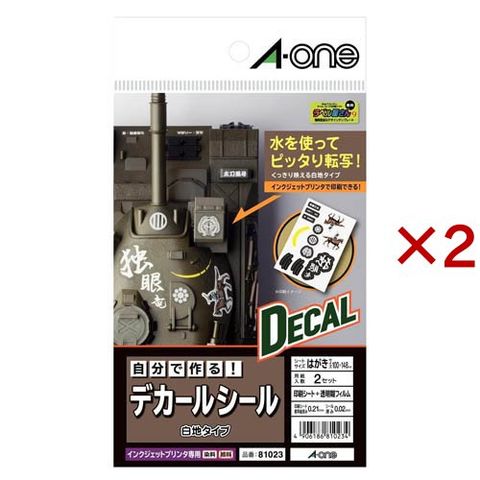 エーワン デカールシール 白地 はがきサイズ 148×100mm 81023 (2シート入×2セット)