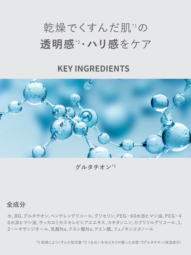 ●グルタチオン(1)を1%配合し、日中の紫外線やエアコンによる乾燥に負けない白玉肌(2)を目指します。
