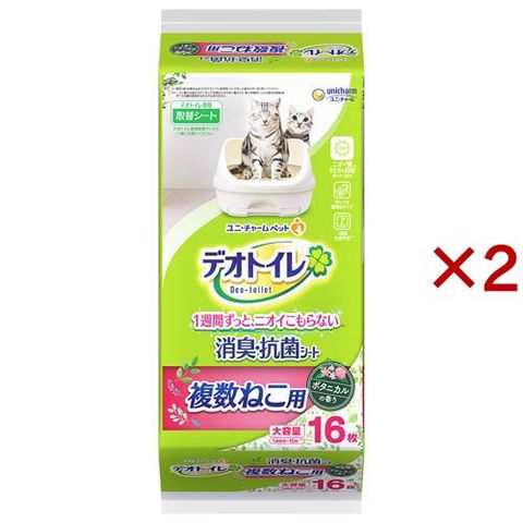 デオトイレ 複数ねこ用 ふんわり香る消臭・抗菌シート ボタニカルの香り (16枚入×2セット)