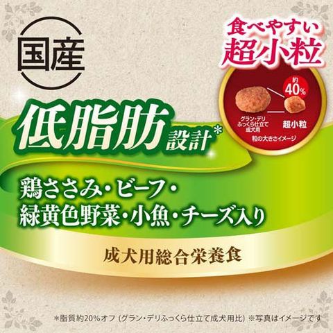 【グラン・デリ ふっくら仕立て 低脂肪 食べやすい超小粒 犬 ソフトフードの商品詳細】