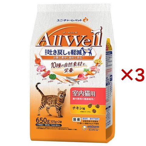 AllWell 10種の自然素材 室内猫用 チキン味 ドライフード (650g×3セット)