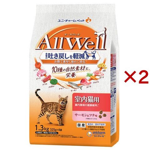 AllWell 10種の自然素材 室内猫用 サーモン&ツナ味 ドライフード (1.3kg×2セット)
