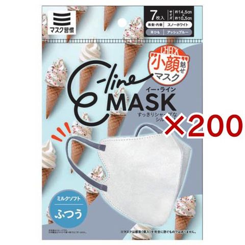 E-lineマスク ふつう スノーホワイト×アッシュブルー (7枚入×200セット)