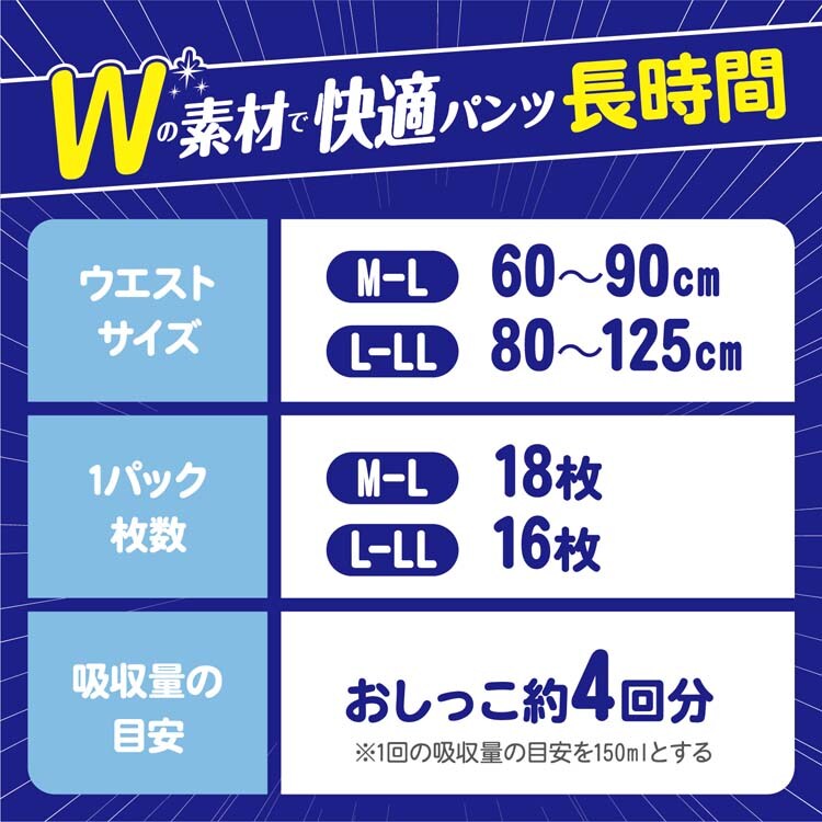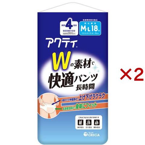 アクティ Wの素材で快適パンツ 長時間 4回分吸収 M-Lサイズ (18枚入×2セット)