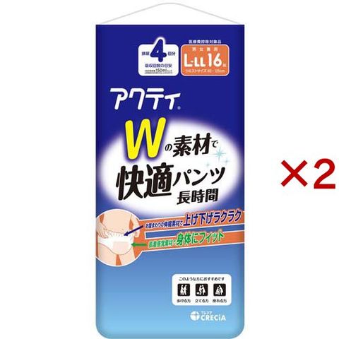 アクティ Wの素材で快適パンツ 長時間 4回分吸収 L-LLサイズ (16枚入×2セット)