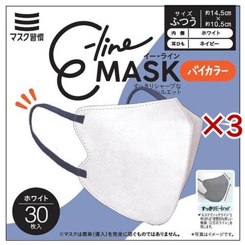 E-lineマスク ふつう ホワイト×ネイビー (30枚入×3セット)