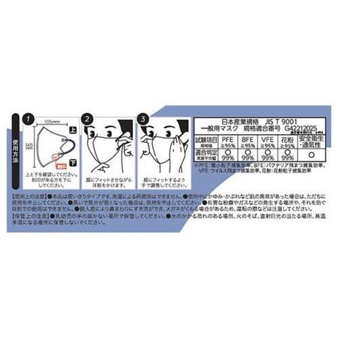 ・個人差により鼻まわりにすき間ができ、メガネがくもる場合があるため、運転の際などは注意してください。