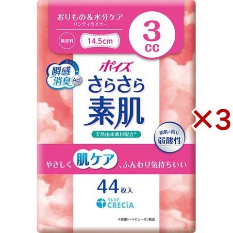 ポイズ さらさら素肌 パンティライナー 3cc 無香料 (44枚入×3セット)